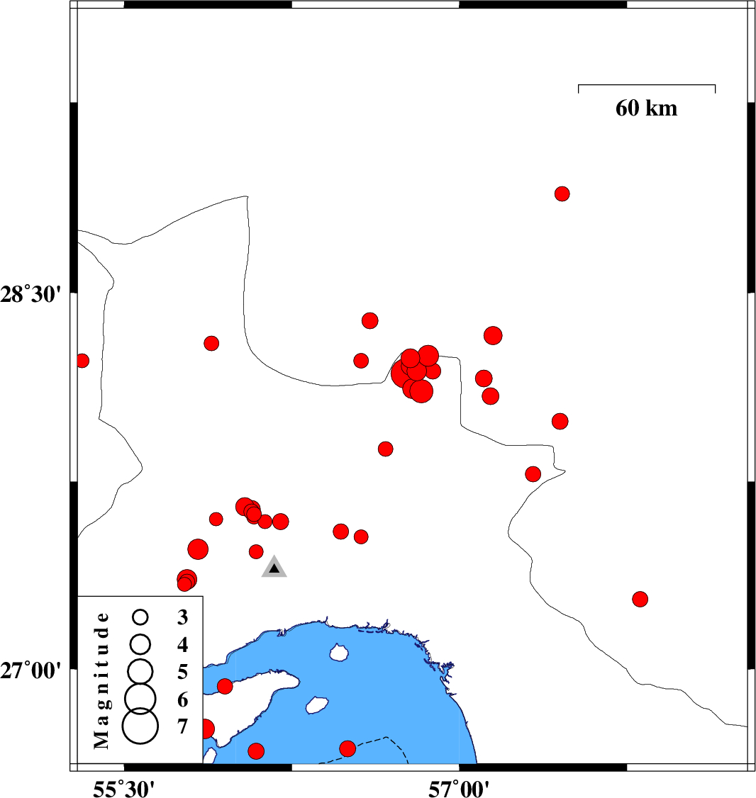 2006/02/28 | 07:31:03.4 | 11:01:03.4 | 28.18 | 56.76 | 18 | Ms:5.9 | |||