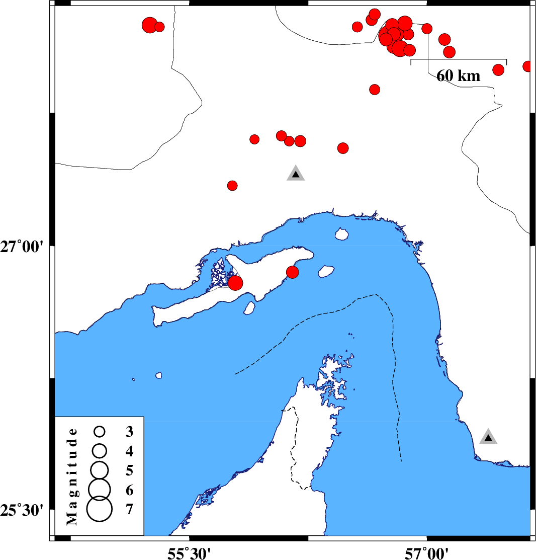 2006/02/28 | 07:31:03.4 | 11:01:03.4 | 28.18 | 56.76 | 18 | Ms:5.9 | |||