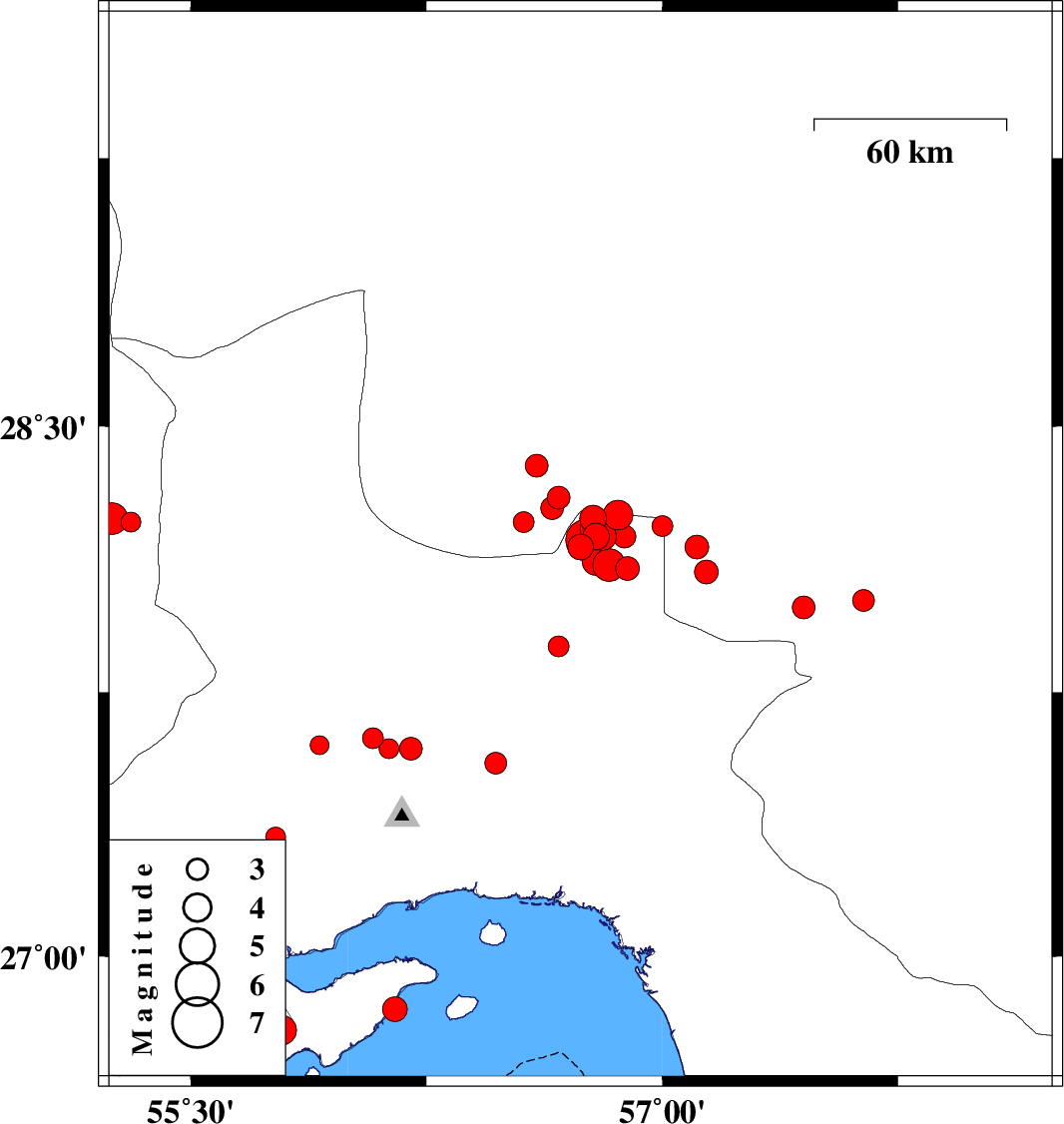 2006/02/28 | 07:31:03.4 | 11:01:03.4 | 28.18 | 56.76 | 18 | Ms:5.9 | |||