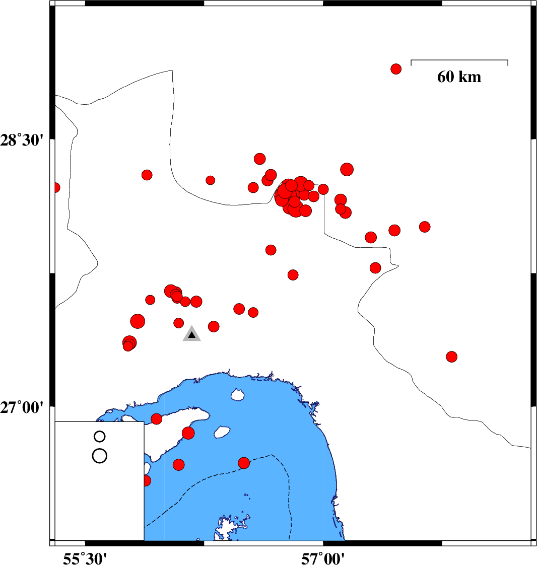 2006/02/28 | 07:31:03.4 | 11:01:03.4 | 28.18 | 56.76 | 18 | Ms:5.9 | |||