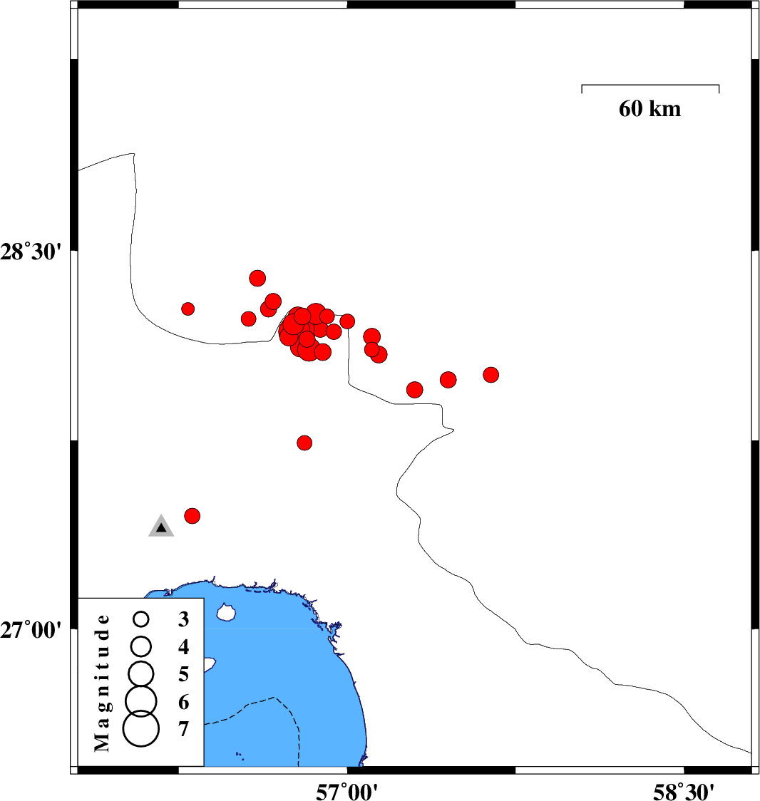 2006/02/28 | 07:31:03.4 | 11:01:03.4 | 28.18 | 56.76 | 18 | Ms:5.9 |