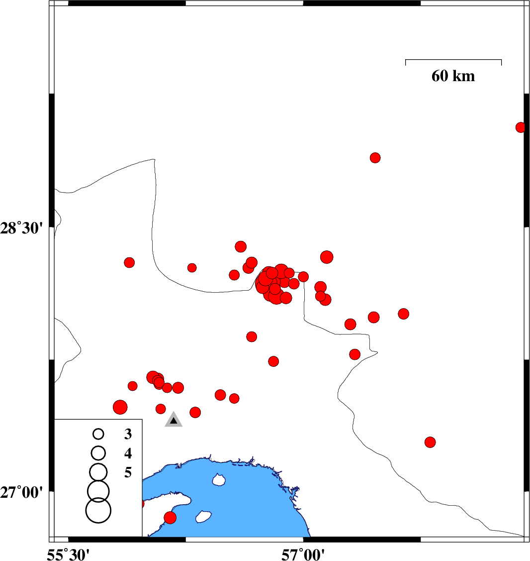 2006/02/28 | 07:31:03.4 | 11:01:03.4 | 28.18 | 56.76 | 18 | Ms:5.9 | |||