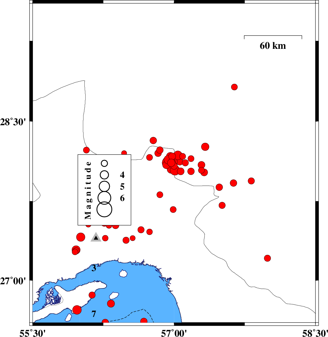 2006/02/28 | 07:31:03.4 | 11:01:03.4 | 28.18 | 56.76 | 18 | Ms:5.9 | |||
