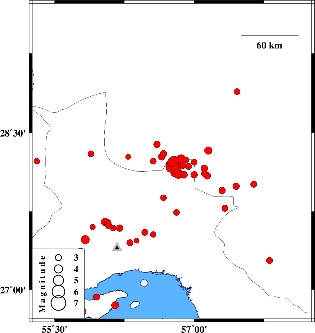2006/02/28 | 07:31:03.4 | 11:01:03.4 | 28.18 | 56.76 | 18 | Ms:5.9 | |||