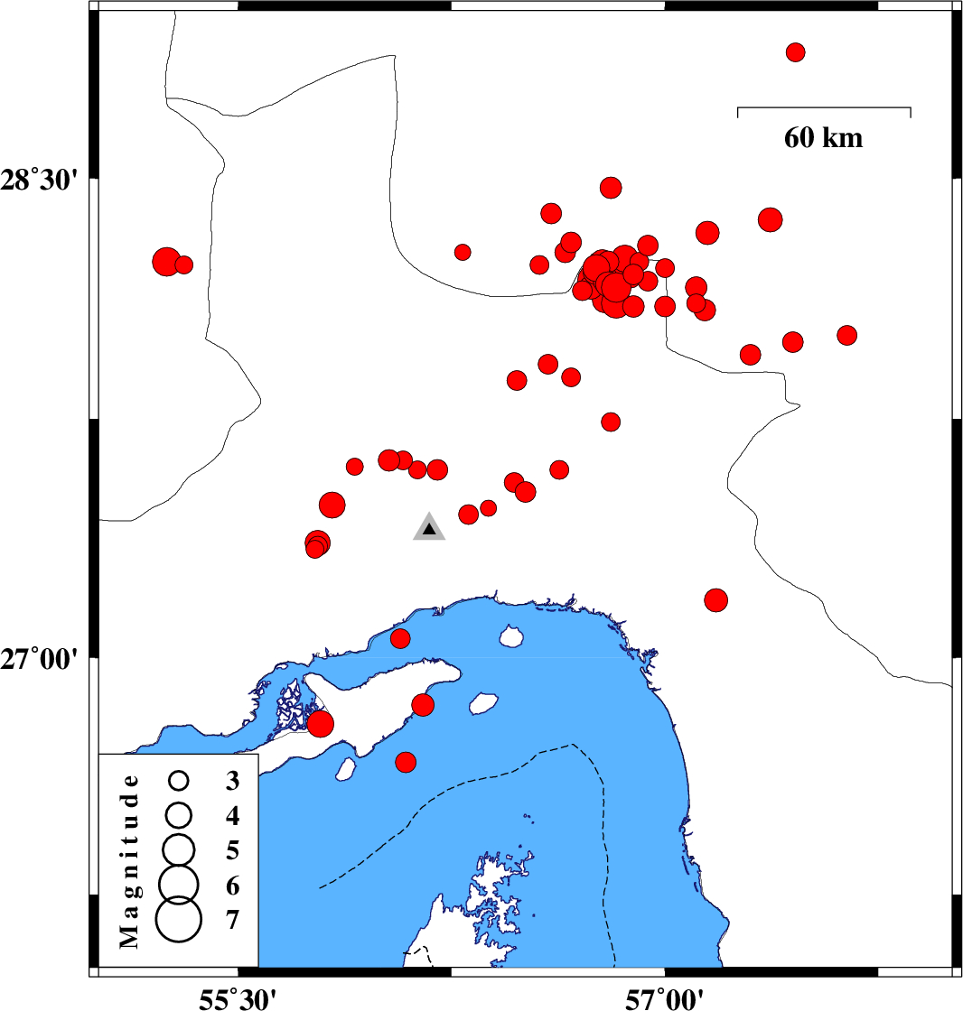 2006/02/28 | 07:31:03.4 | 11:01:03.4 | 28.18 | 56.76 | 18 | Ms:5.9 | |||