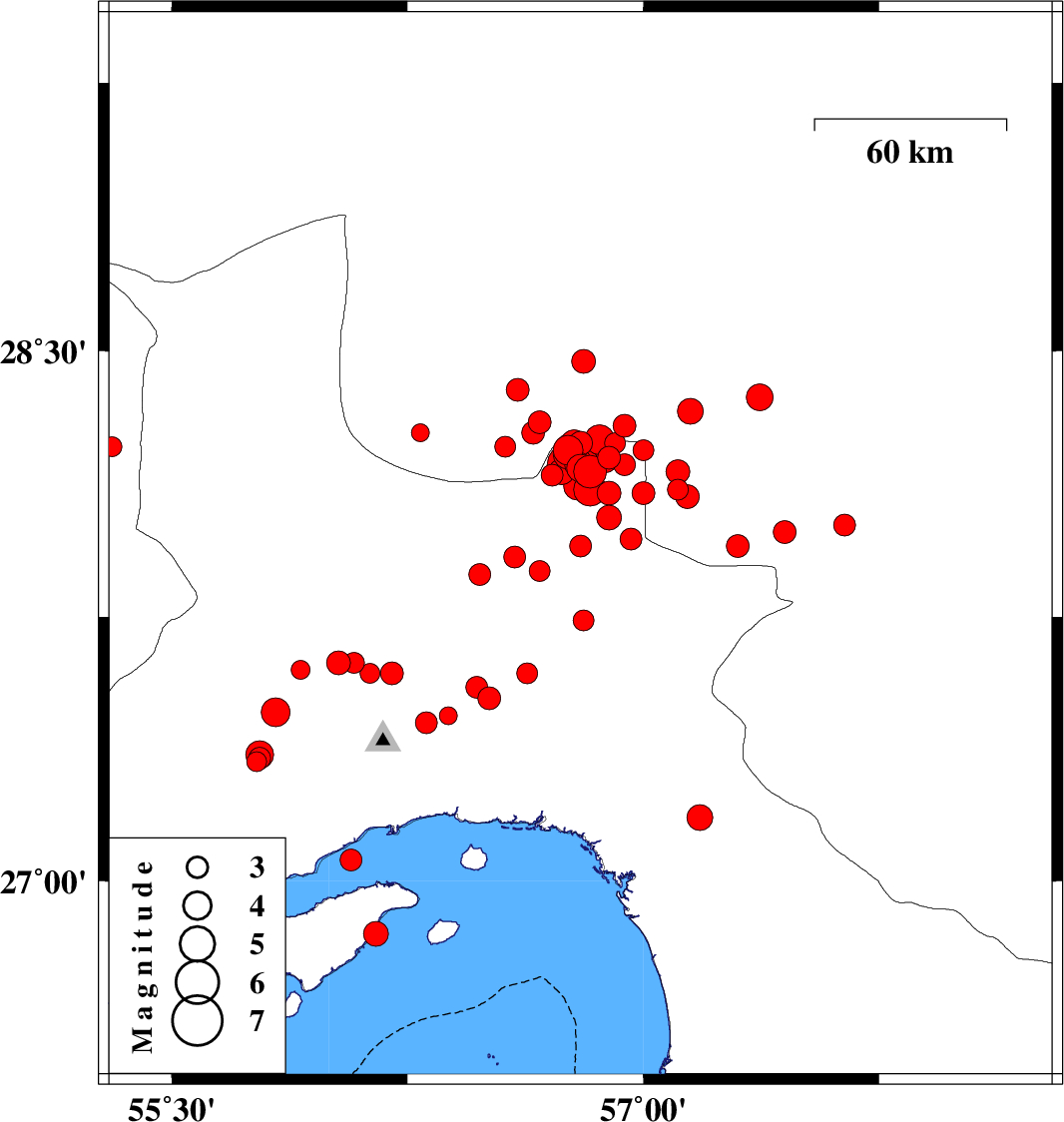 2006/02/28 | 07:31:03.4 | 11:01:03.4 | 28.18 | 56.76 | 18 | Ms:5.9 | |||