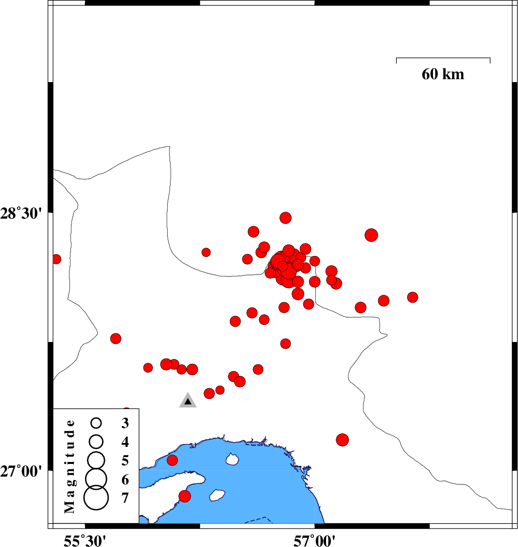 2006/02/28 | 07:31:03.4 | 11:01:03.4 | 28.18 | 56.76 | 18 | Ms:5.9 | |||
