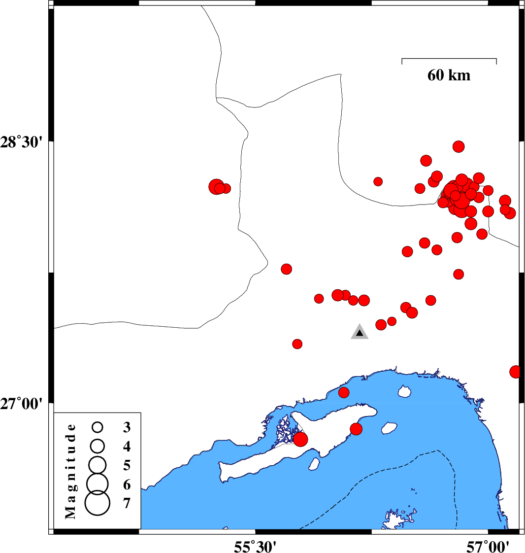 2006/02/28 | 07:31:03.4 | 11:01:03.4 | 28.18 | 56.76 | 18 | Ms:5.9 | |||