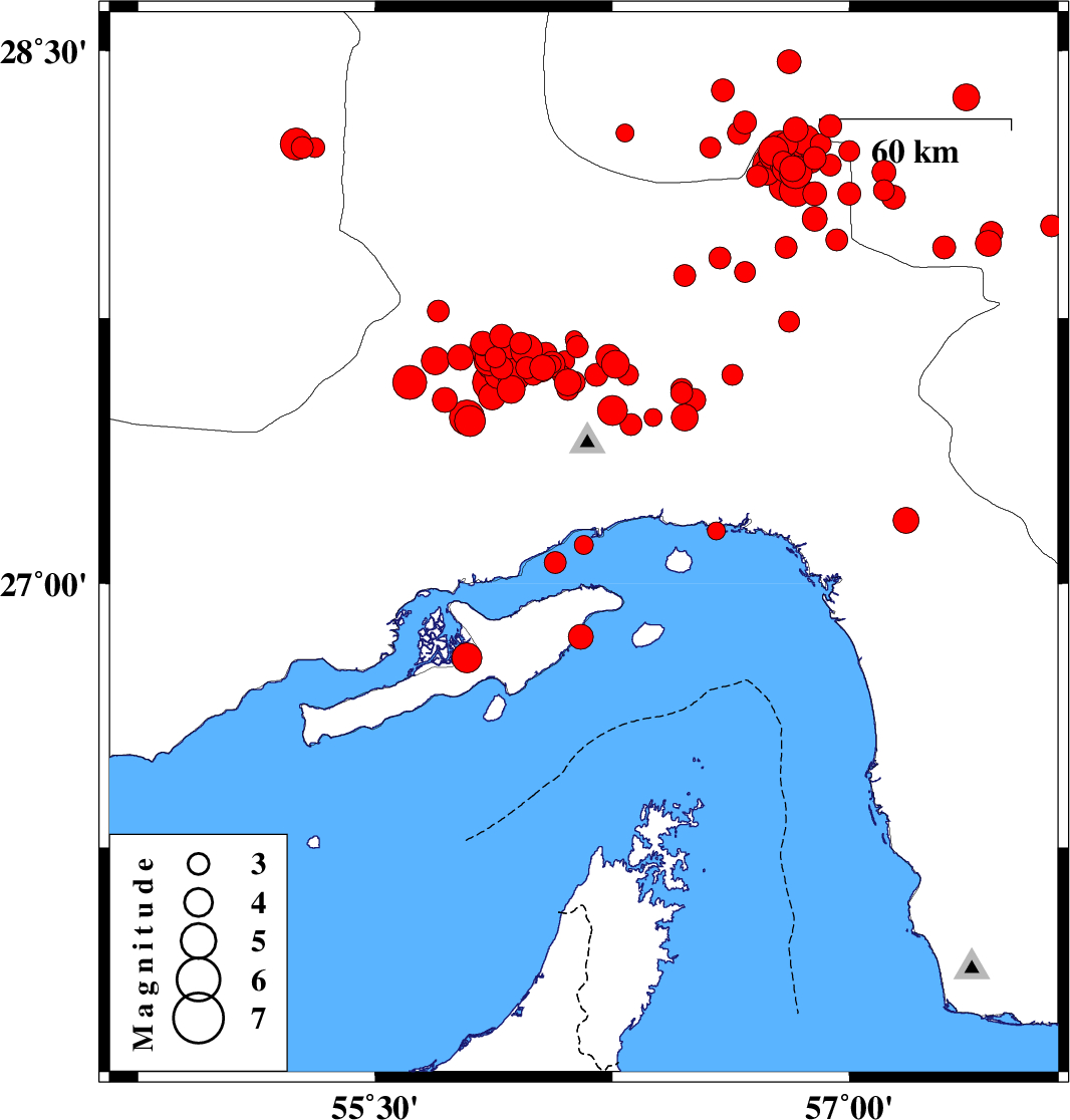 2006/02/28 | 07:31:03.4 | 11:01:03.4 | 28.18 | 56.76 | 18 | Ms:5.9 | |||