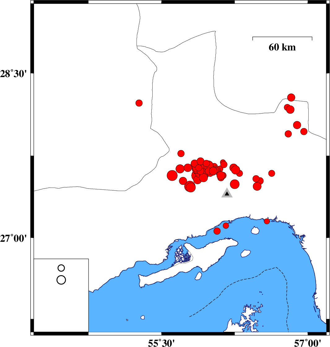Map Region : lat:26.13-29.13  lon:54.19-57.19
