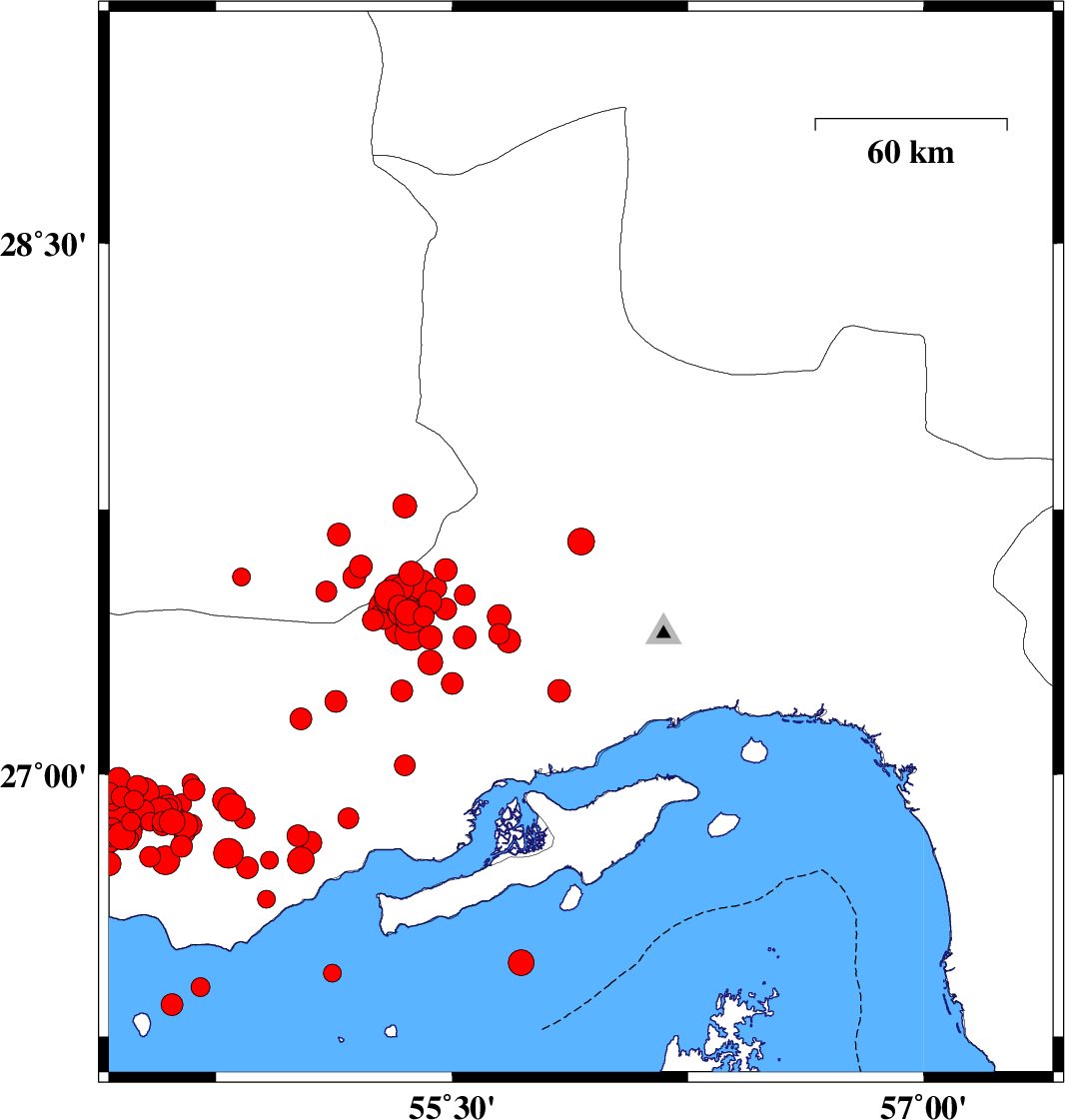 2006/03/25 | 09:55:16.0 | 13:25:16.0 | 27.62 | 56.02 | 16 | ML:5.1 | |||