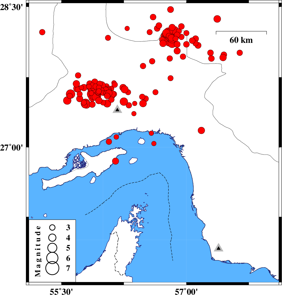 2006/02/28 | 07:31:03.4 | 11:01:03.4 | 28.18 | 56.76 | 18 | Ms:5.9 |