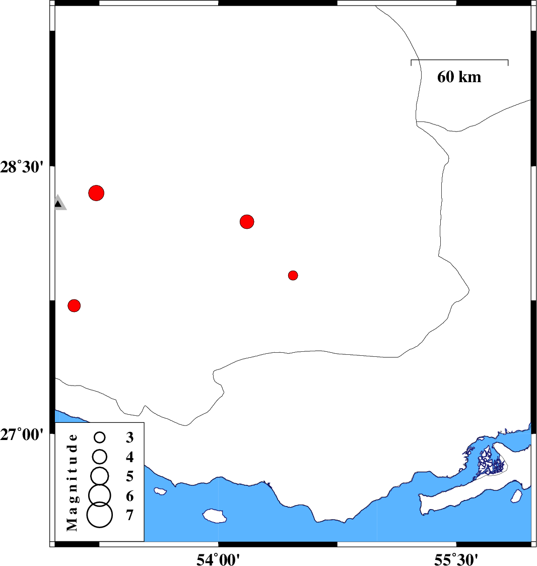 2004/12/28 | 20:30:13.2 | 00:00:13.2 | 28.19 | 54.18 | 14 | ML:4 | 58 km North-West of Lar, Fars Province |