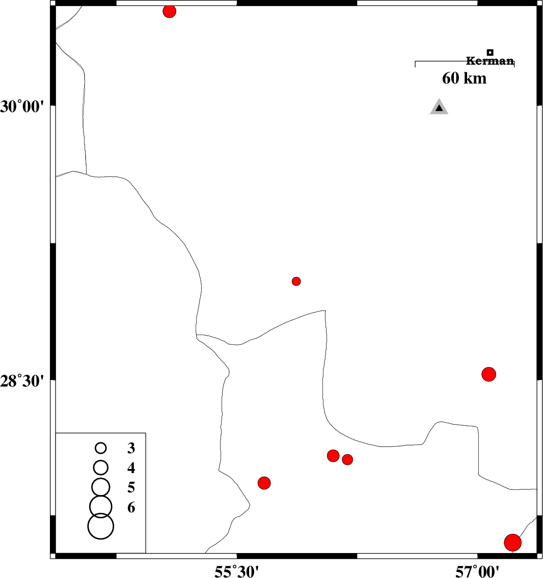 2004/12/17 | 06:26:44.9 | 09:56:44.9 | 28.08 | 56.1 | 41 | ML:3.4 | 31 km South-East of Hajiabad, Hormozgan Province | ||