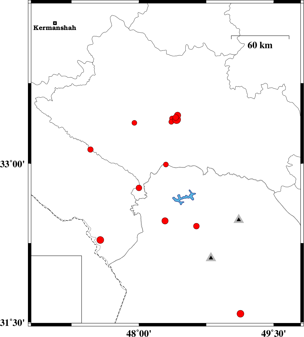 2004/12/30 | 23:19:20.6 | 02:49:20.6 | 33.38 | 47.95 | 15 | ML:2.5 | 33 km North-East of Pol-e dokhtar, Lorestan Province | ||