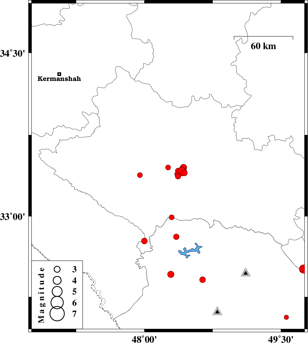| 2004/12/30 | 23:19:20.6 | 02:49:20.6 | 33.38 | 47.95 | 15 | ML:2.5 | 33 km North-East of Pol-e dokhtar, Lorestan Province | ||