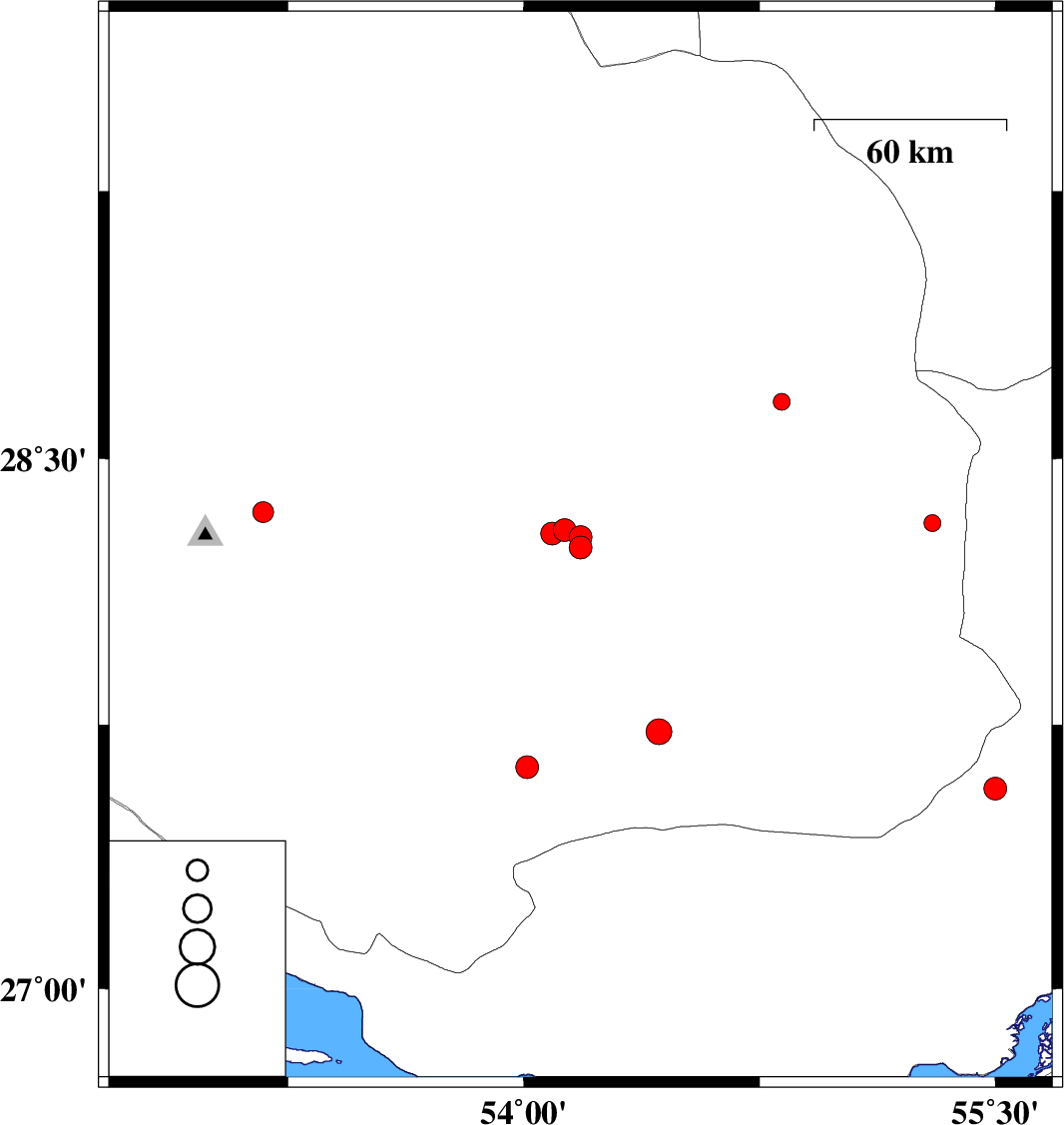 2005/05/08 | 16:42:24.7 | 21:12:24.7 | 27.63 | 54.01 | 15 | ML:3.3 | |||