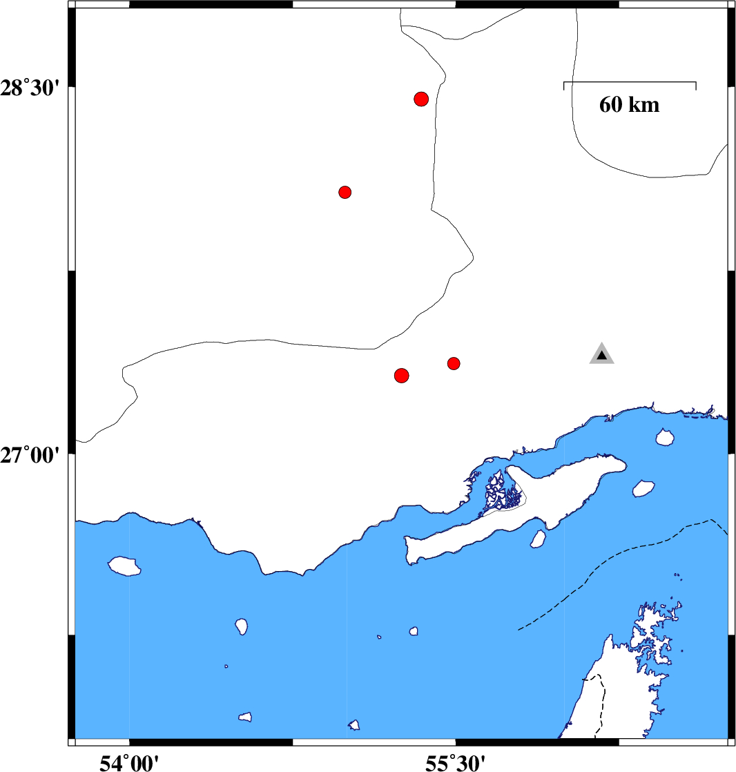2005/05/28 | 10:04:08.2 | 14:34:08.2 | 27.32 | 55.25 | 46 | ML:2.9 | |||