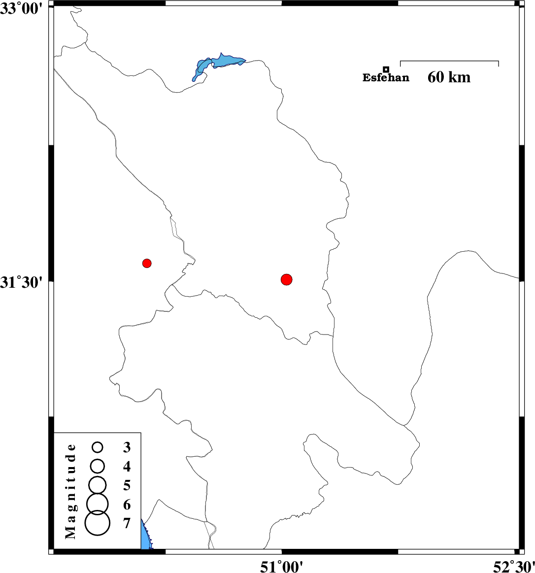 | 2004/09/01 | 20:00:54.0 | 00:30:54.0 | 31.51 | 51.03 | 14 | ML:3.2 | 20 km East of Lordegan, Chaharmahal Bakhtiari Province | ||