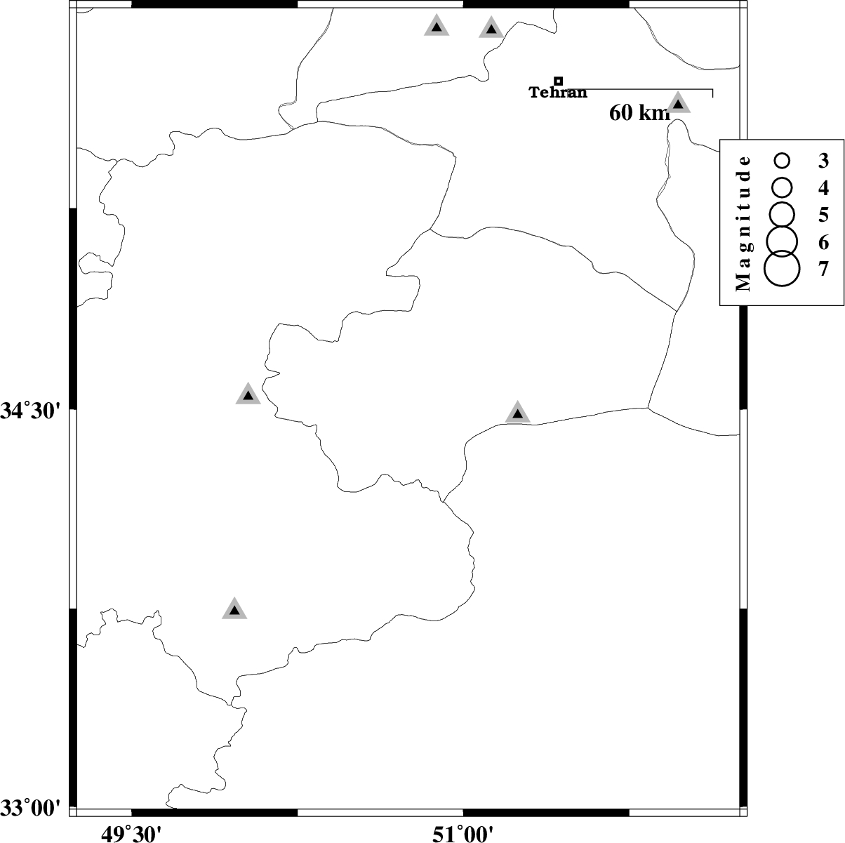 | 2004/08/29 | 00:05:37.2 | 04:35:37.2 | 35.33 | 51.78 | 18 | ML:2.3 | 10 km East of Varamin, Tehran Province |
