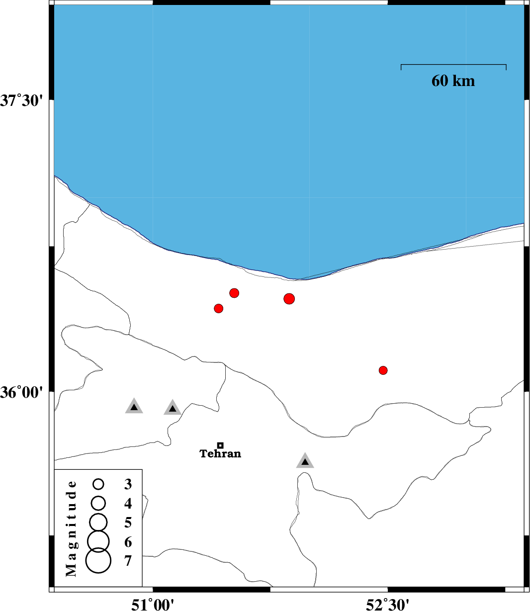 | 2004/08/17 | 07:35:00.5 | 12:05:00.5 | 36.48 | 51.87 | 6 | ML:3.1 | 17 km West of Nur, Mazandaran Province | ||