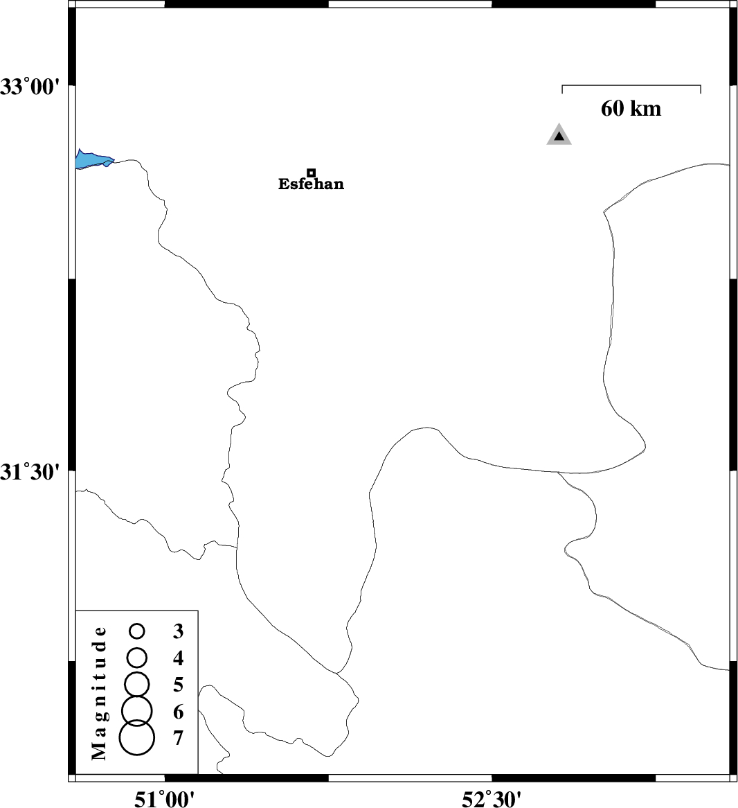 | 2004/09/17 | 23:33:06.2 | 04:03:06.2 | 31.8 | 52.09 | 25 | ML:2.8 | 31 km South-East of Shahreza, Esfahan Province |