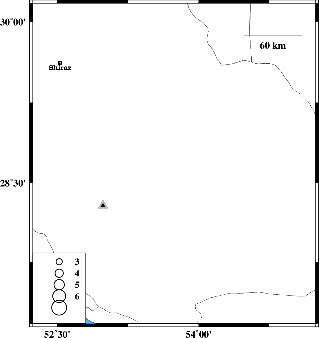 | 2004/09/21 | 21:54:14.8 | 01:24:14.8 | 28.67 | 53.74 | 14 | ML:2.5 | 26 km North-East of Jahrom, Fars Province |
