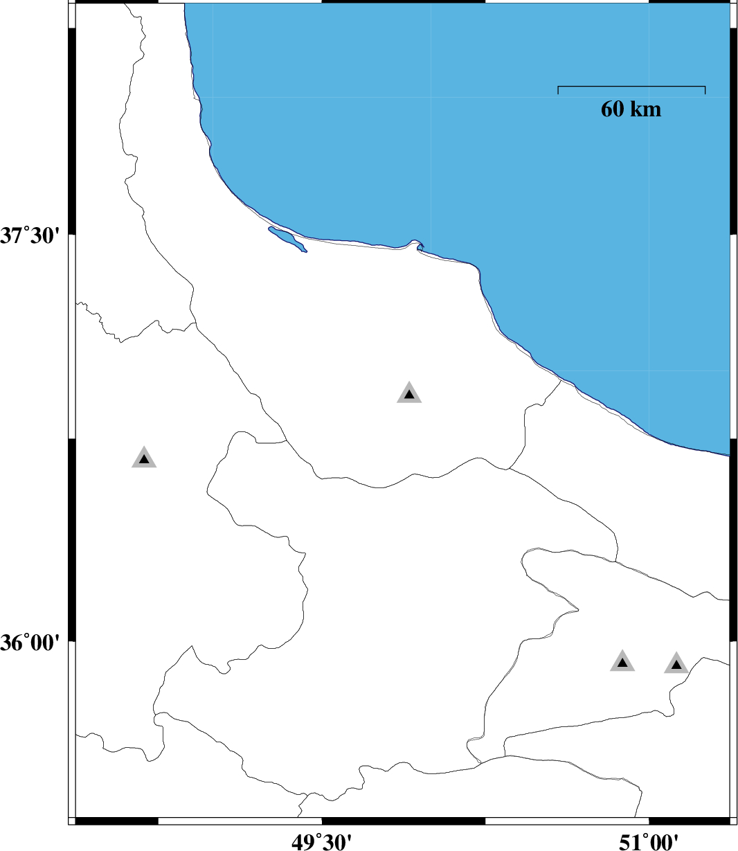 | 2004/10/01 | 07:32:09.6 | 11:02:09.6 | 36.84 | 49.87 | 14 | ML:2.3 | 33 km South of Siahkal, Gilan Province | ||