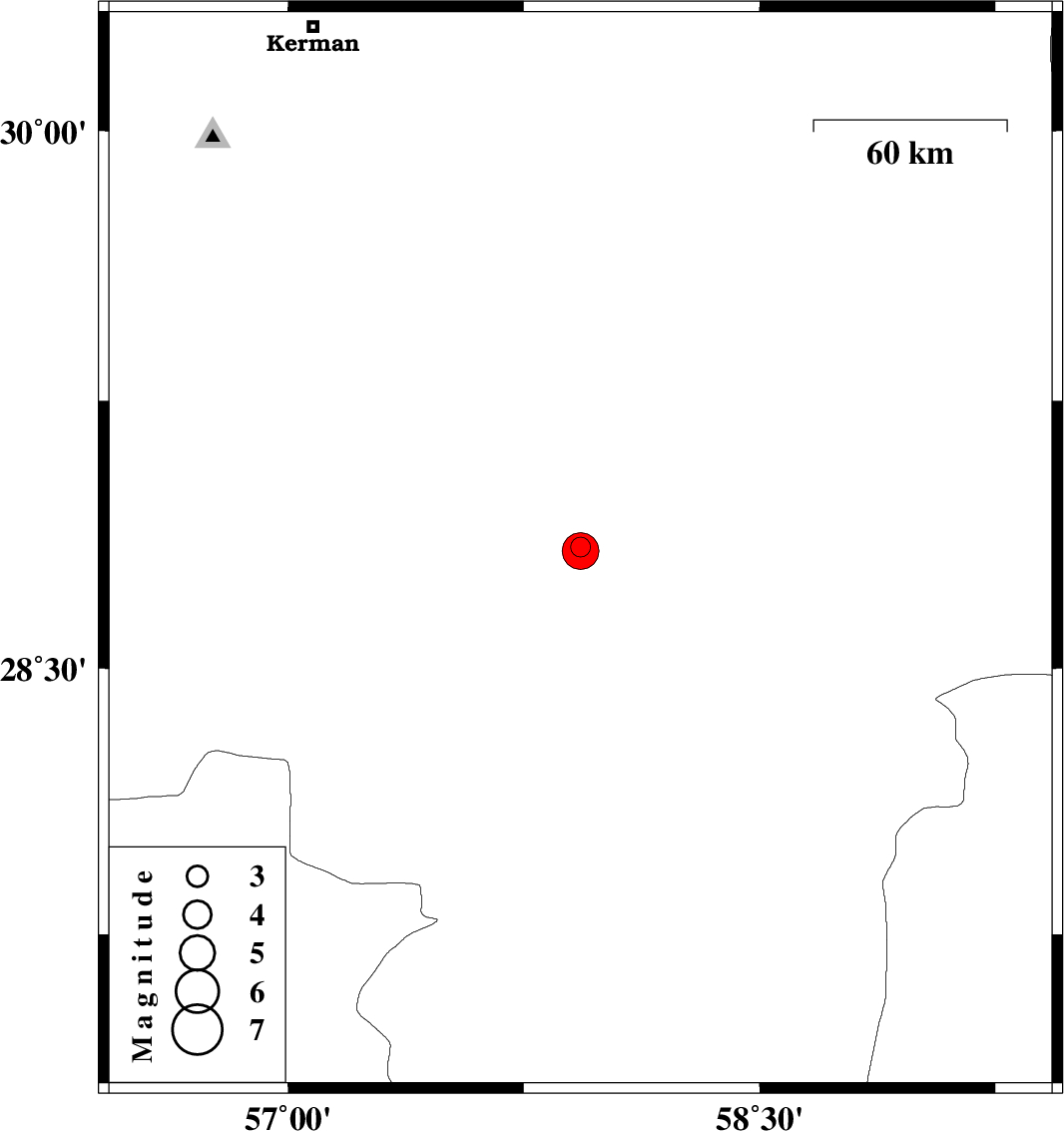 | 2004/10/06 | 11:14:26.1 | 14:44:26.1 | 28.83 | 57.93 | 14 | ML:5.2 | 25 km North-East of Jiroft, Kerman Province |