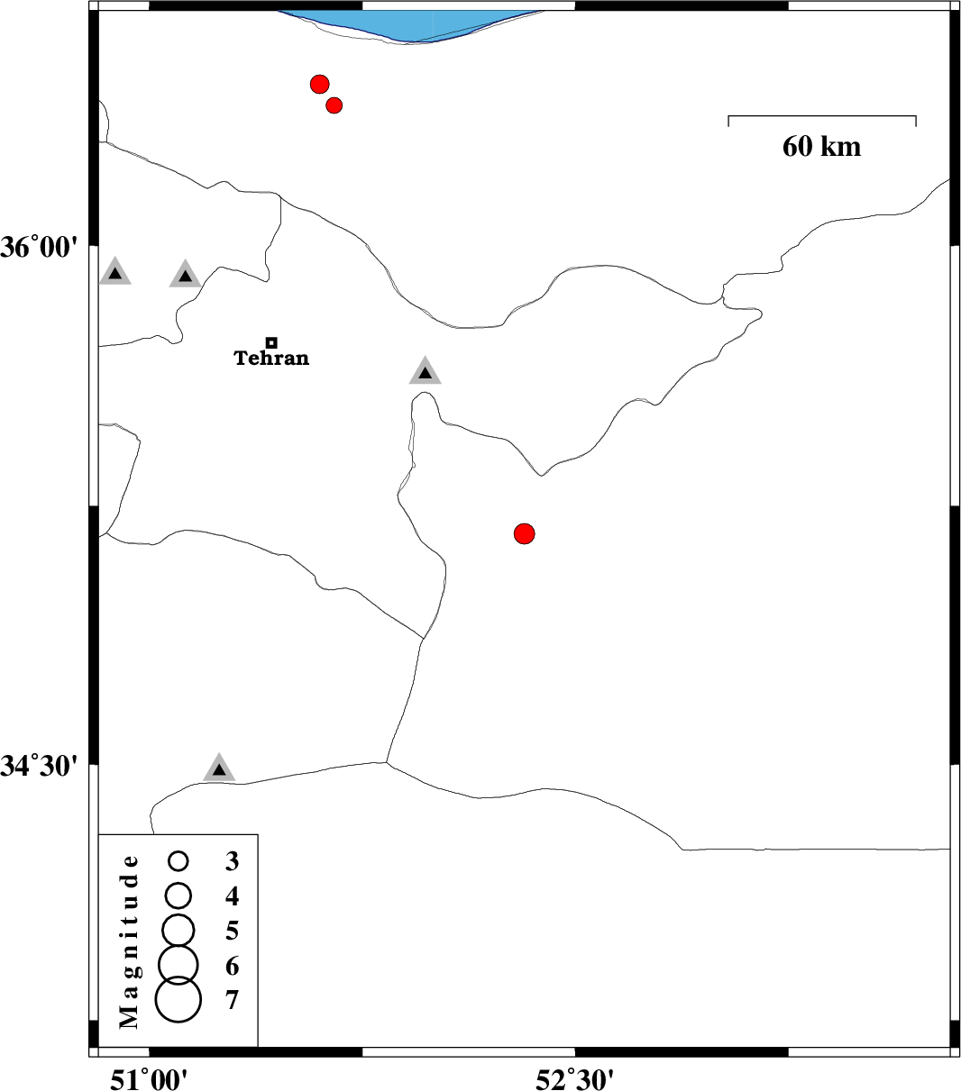 | 2004/10/12 | 13:14:06.7 | 16:44:06.7 | 36.4 | 51.65 | 34 | ML:2.5 | 30 km South-East of Nowshahr, Mazandaran Province |