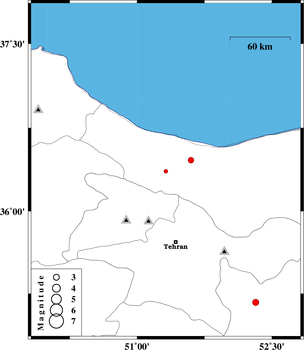 | 2004/10/16 | 12:48:59.6 | 16:18:59.6 | 36.46 | 51.6 | 10 | ML:2.9 | 22 km South-East of Nowshahr, Mazandaran Province |