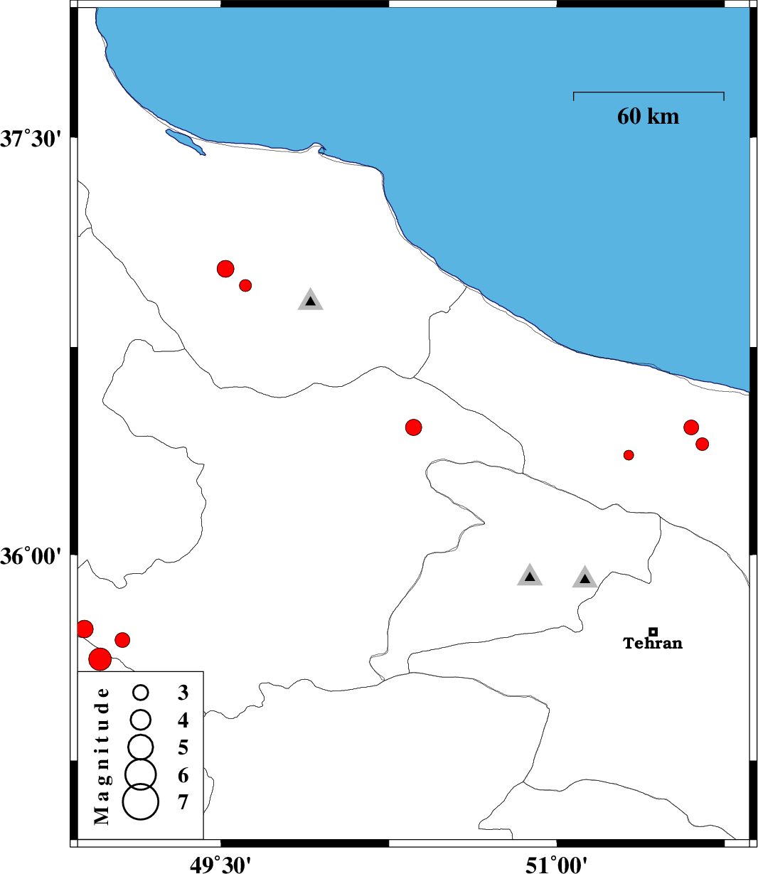 | 2004/10/05 | 12:10:51.2 | 15:40:51.2 | 36.97 | 49.61 | 14 | ML:2.4 | 23 km North-East of Rudbar, Gilan Province |