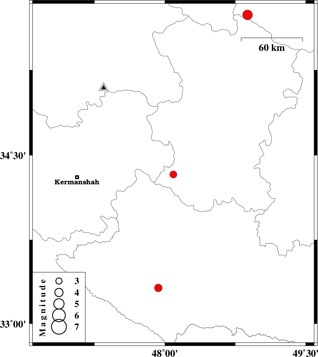 | 2004/11/09 | 02:02:25.8 | 05:32:25.8 | 34.33 | 48.09 | 18 | ML:3.4 | 22 km South-East of Kangavar, Kermanshah Province | ||