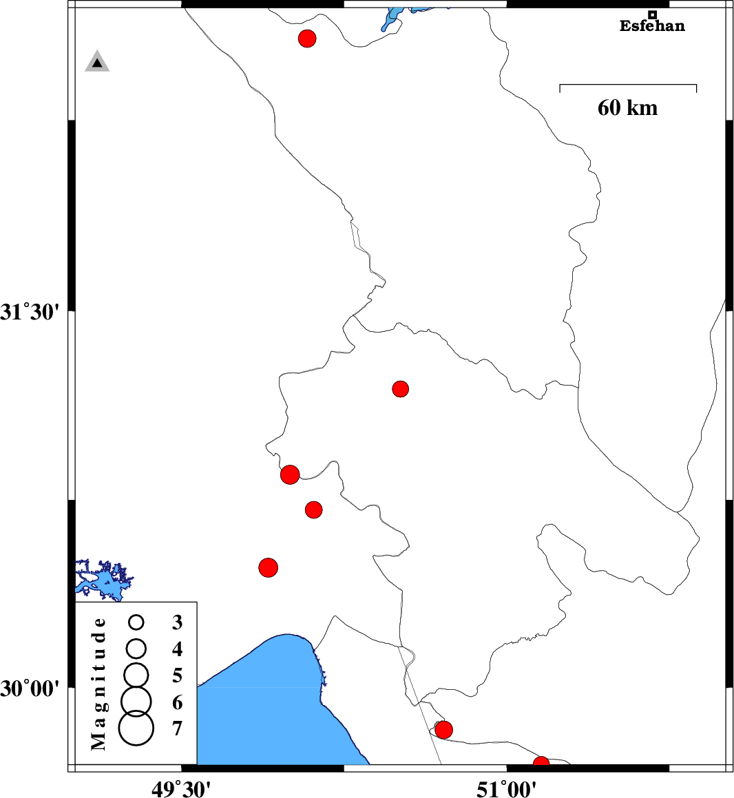 | 2004/10/14 | 10:48:07.2 | 14:18:07.2 | 30.85 | 50 | 36 | ML:3.9 | 29 km East of Omidiyeh, Khoozestan Province |