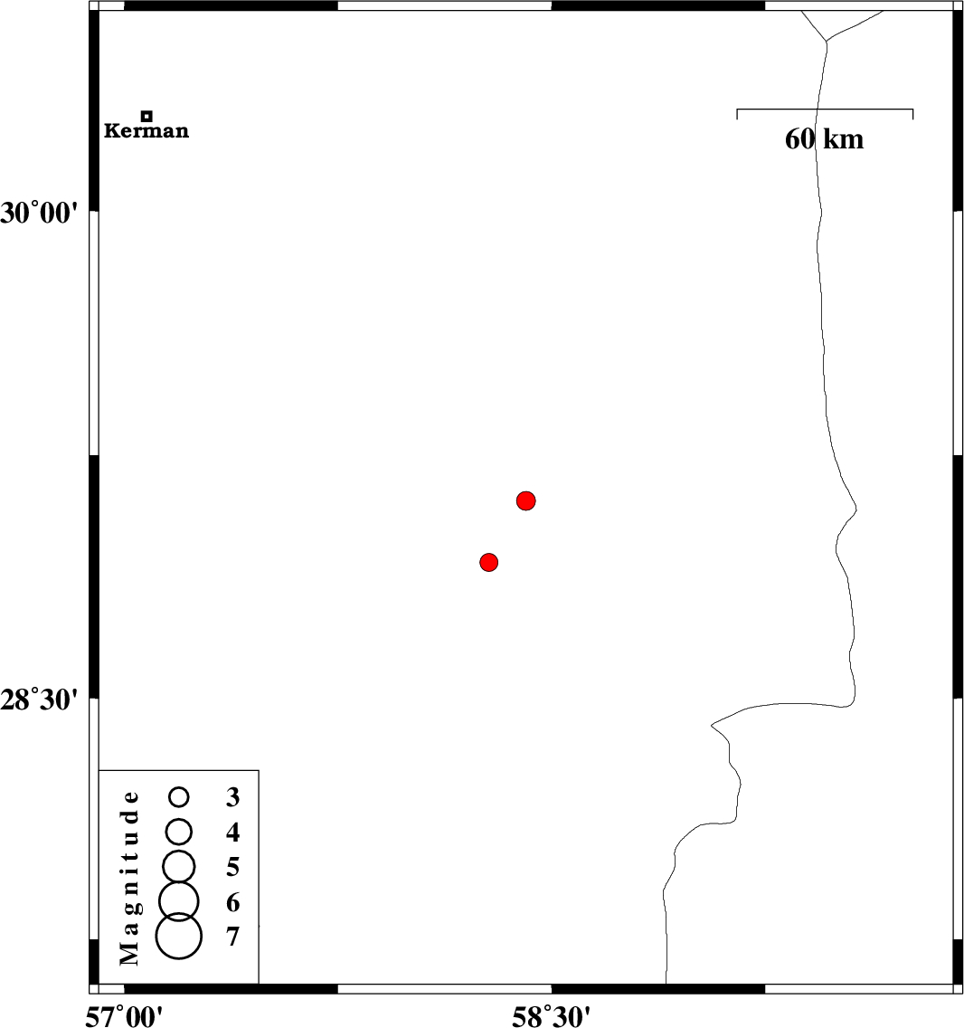 | 2004/11/10 | 15:11:50.3 | 18:41:50.3 | 29.11 | 58.41 | 15 | ML:2.9 | 5 km Bam, Kerman Province | ||