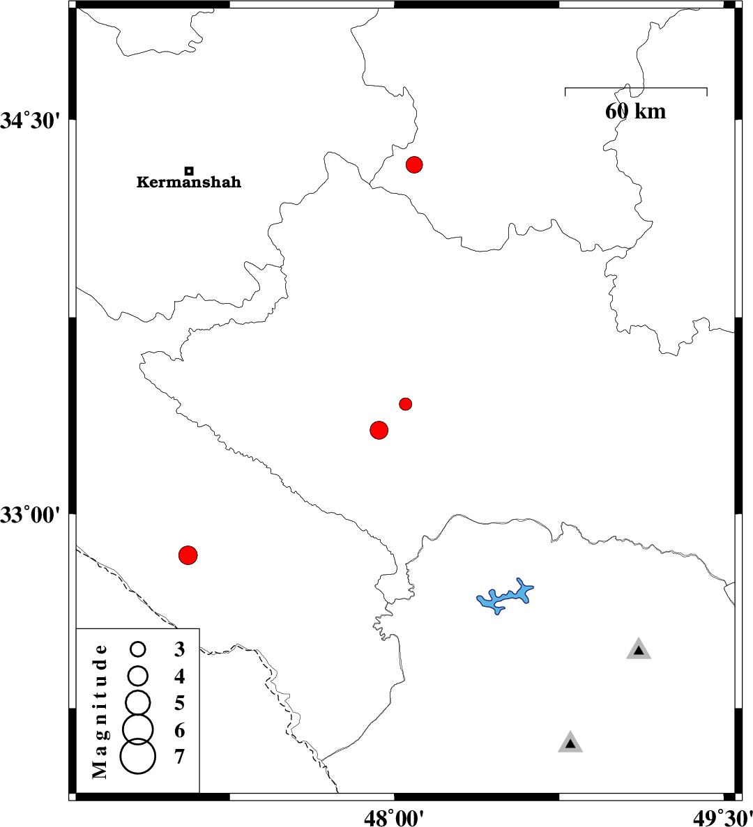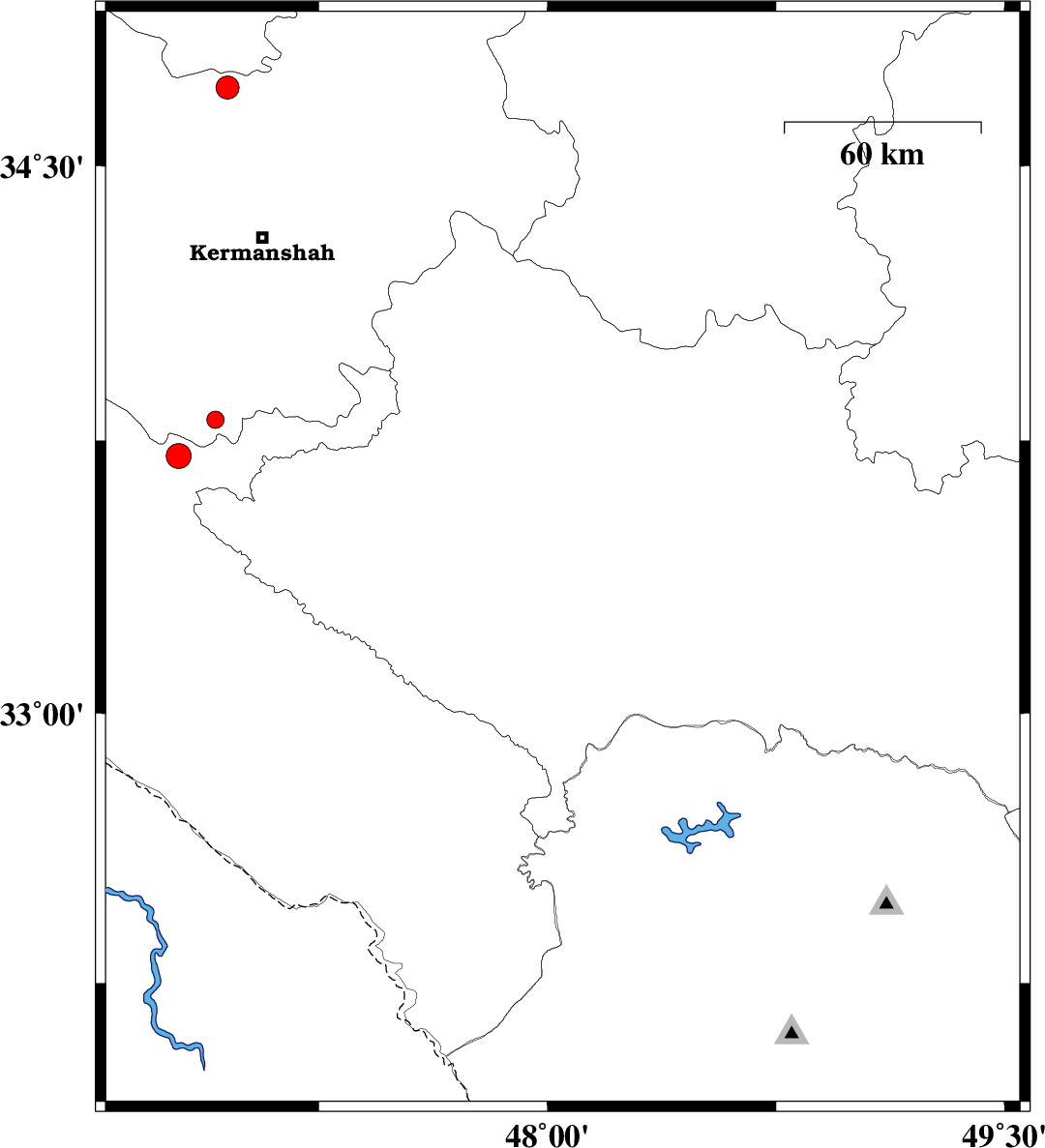 | 2004/11/09 | 02:02:25.8 | 05:32:25.8 | 34.33 | 48.09 | 18 | ML:3.4 | 22 km South-East of Kangavar, Kermanshah Province | ||