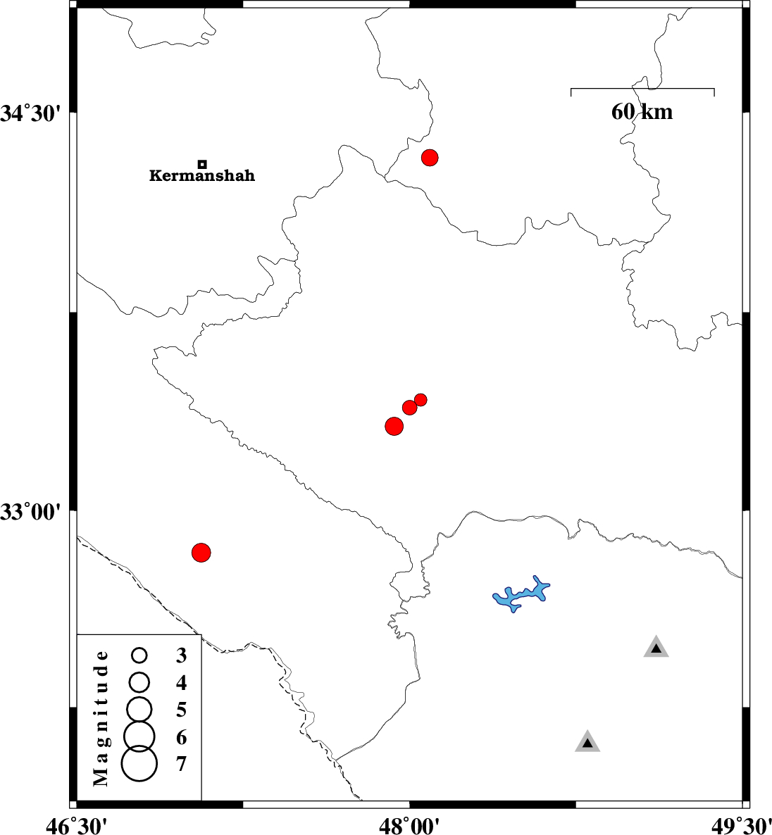 | 2004/11/09 | 02:02:25.8 | 05:32:25.8 | 34.33 | 48.09 | 18 | ML:3.4 | 22 km South-East of Kangavar, Kermanshah Province | ||