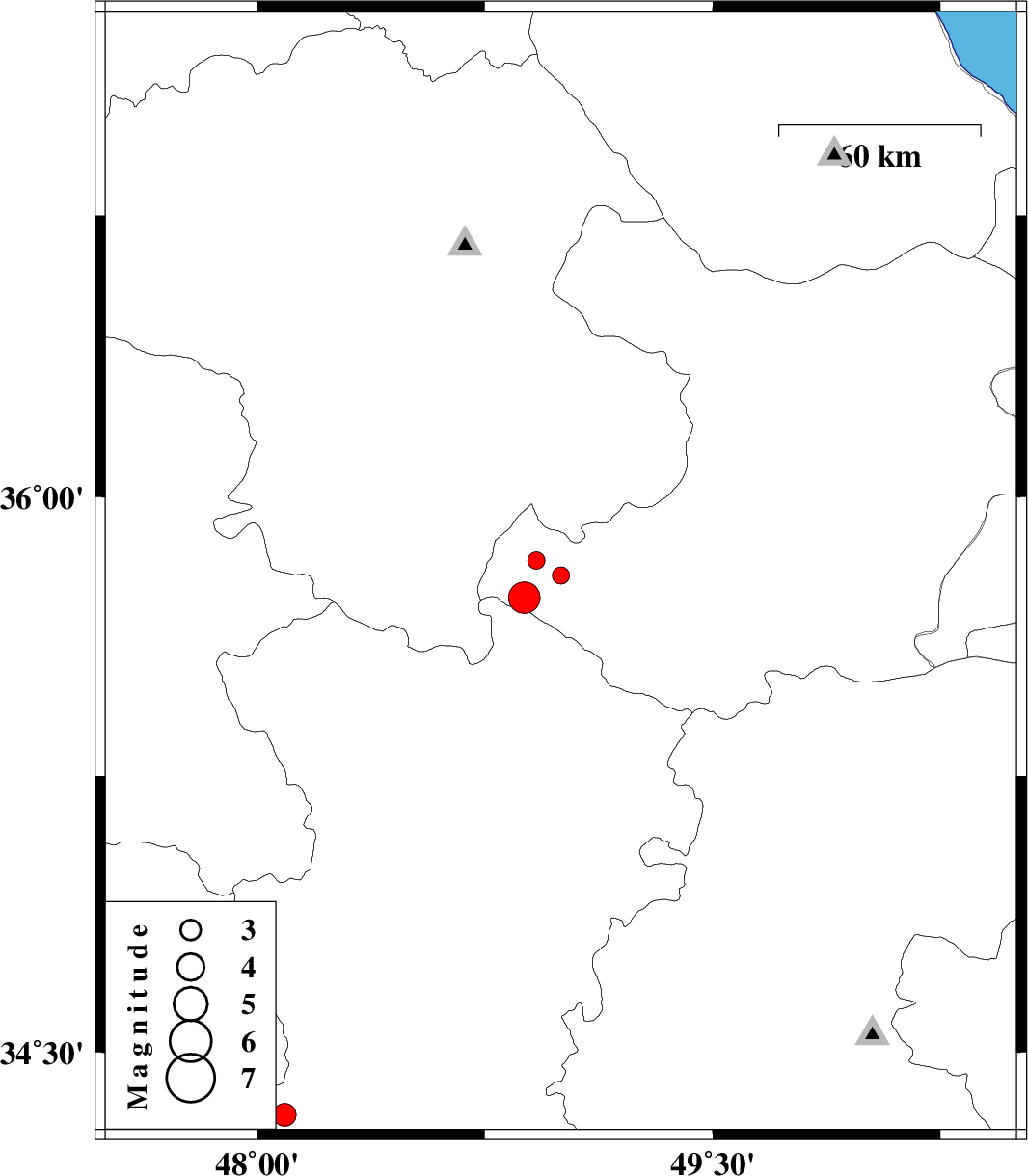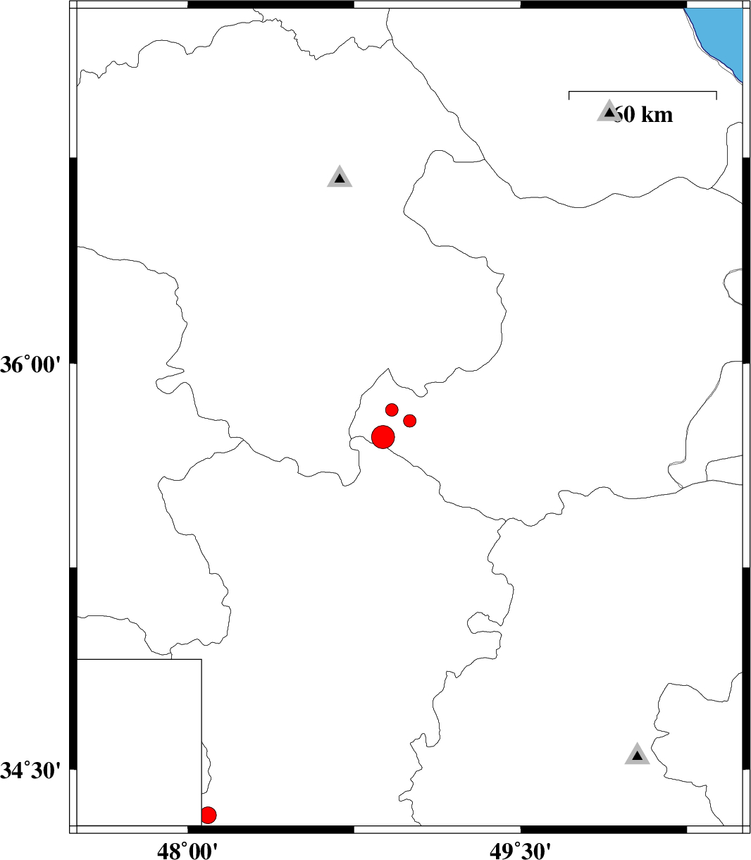 | 2004/11/12 | 10:51:55.5 | 14:21:55.5 | 35.83 | 48.92 | 14 | ML:2.6 | 43 km South-East of Qeydar, Zanjan Province | ||