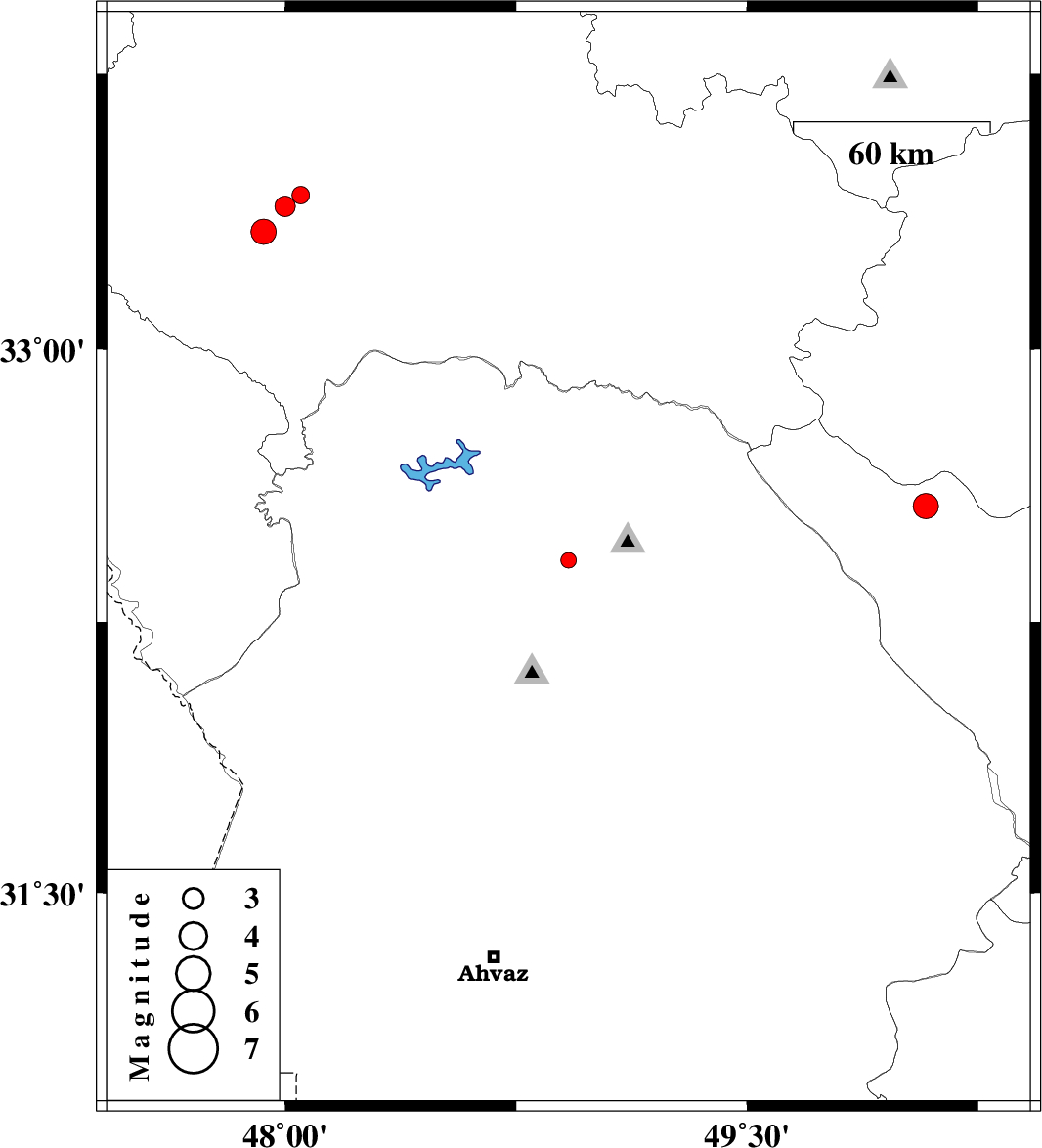 | 2004/11/07 | 18:02:54.2 | 21:32:54.2 | 33.32 | 47.93 | 15 | ML:3.7 | 26 km North-East of Pol-e dokhtar, Lorestan Province | ||