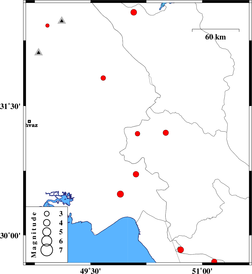 | 2004/10/31 | 06:03:14.8 | 09:33:14.8 | 30.48 | 49.9 | 27 | ML:4 | 32 km North-East of Hendijan, Khoozestan Province | ||