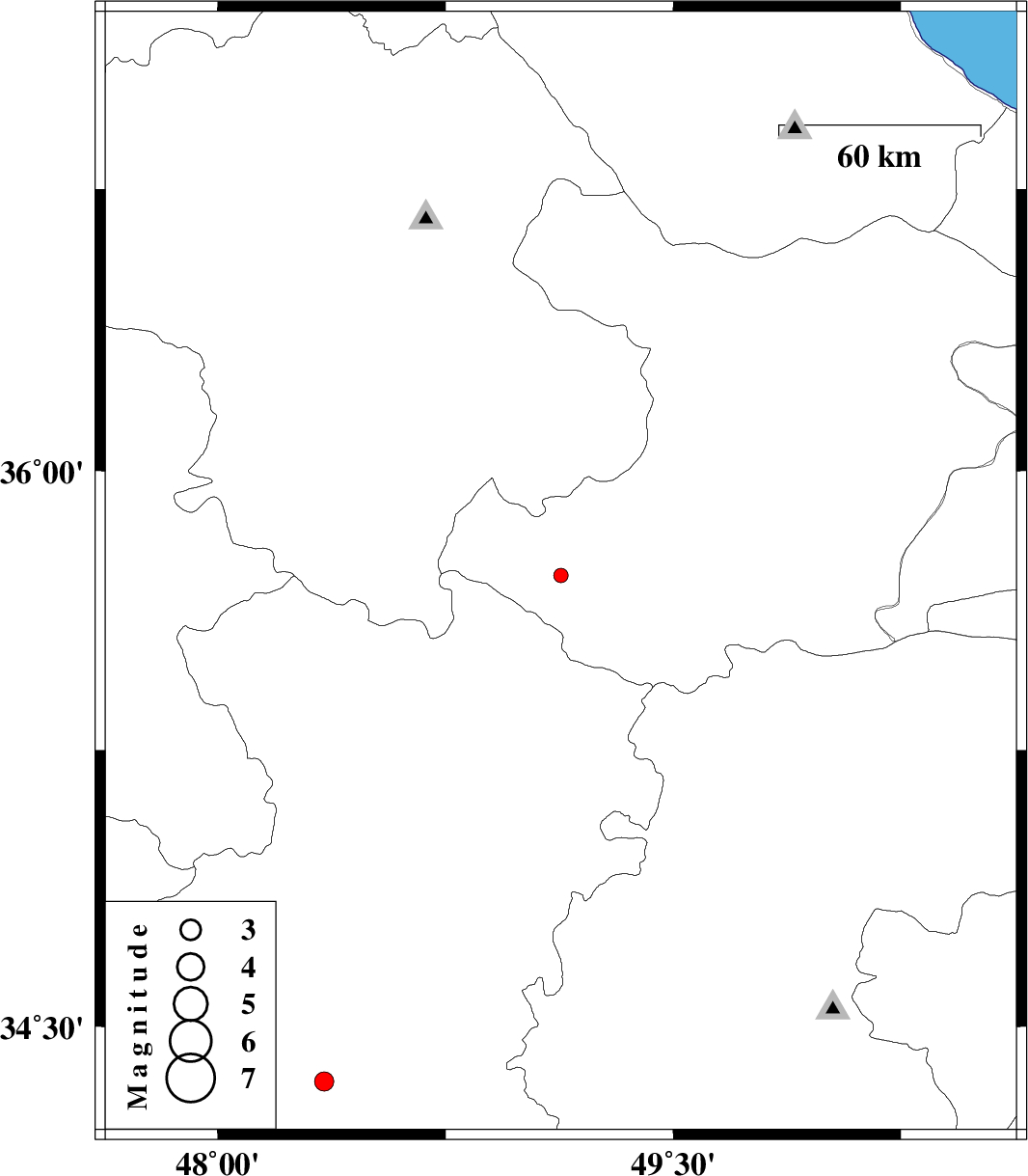 | 2004/11/28 | 03:25:02.0 | 06:55:02.0 | 35.72 | 49.13 | 16 | ML:2.1 | 38 km North of Razan, Hamedan Province | ||