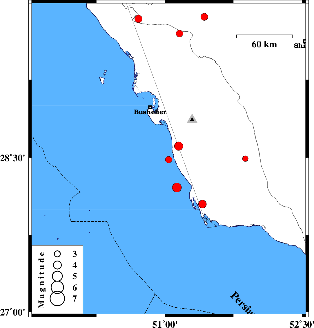 | 2004/11/03 | 23:16:18.4 | 02:46:18.4 | 29.69 | 51.16 | 15 | ML:3.4 | 47 km North of Borazjan, Bushehr Province |