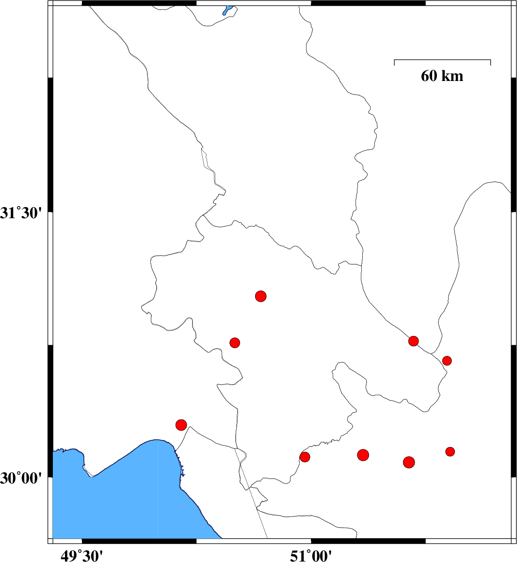 34 km North-East of Bandar-e genaveh, Bushehr Province | |