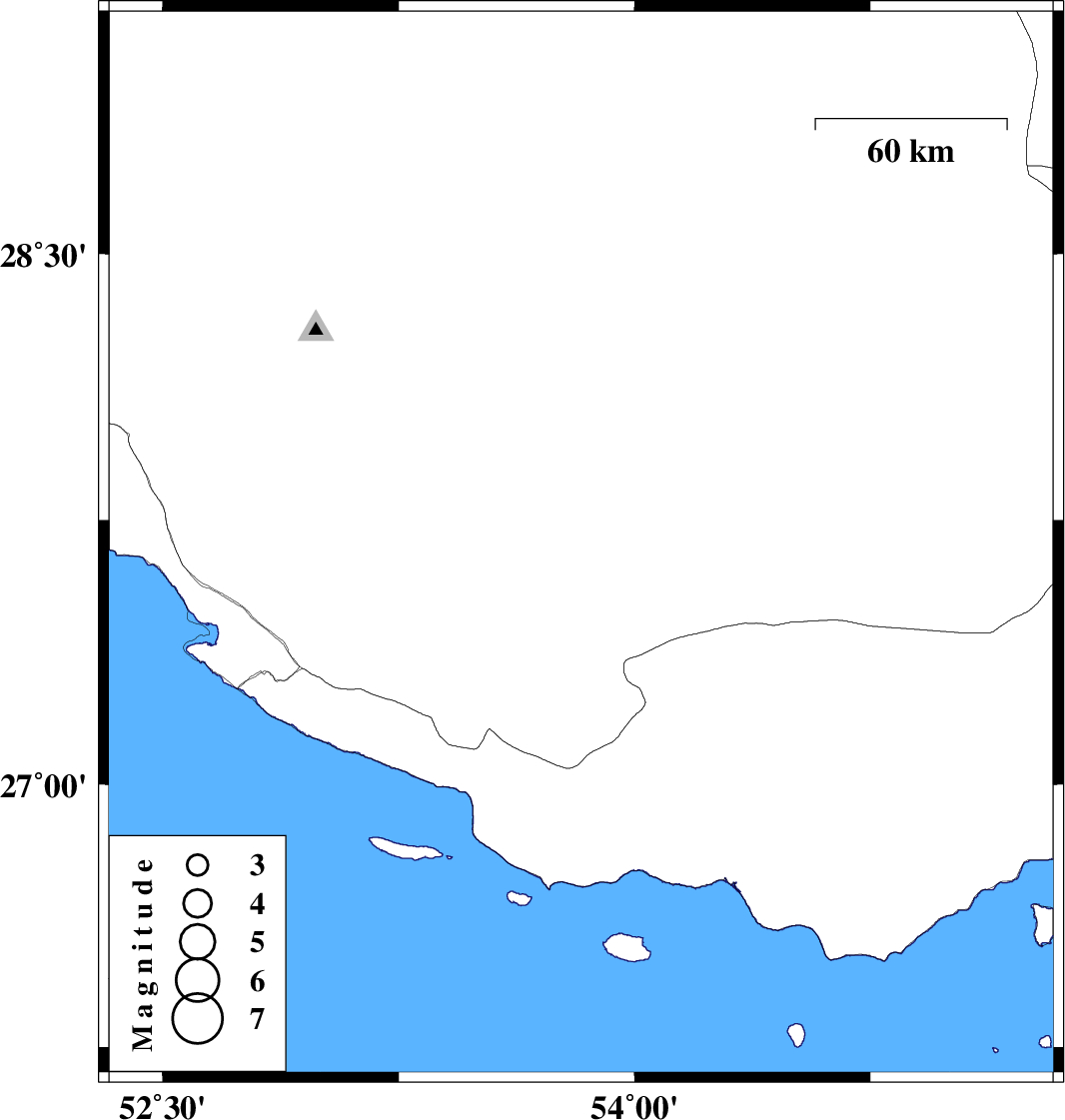 | 2004/12/09 | 17:44:19.8 | 21:14:19.8 | 27.68 | 53.83 | 15 | ML:3.6 | 50 km West of Lar, Fars Province |