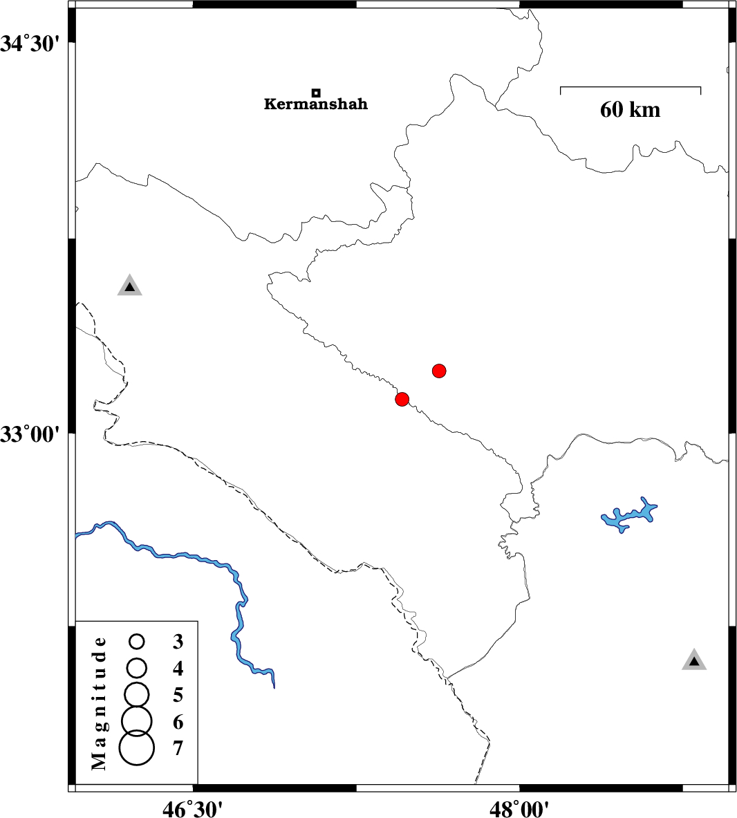 2004/12/14 | 14:17:07.8 | 17:47:07.8 | 33.13 | 47.46 | 42 | ML:2.8 | 14 km East of Darreh Shahr, Ilam Province | ||