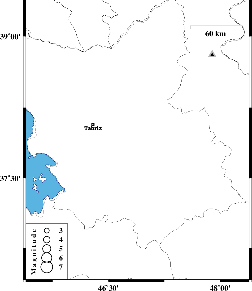 | 2004/12/24 | 11:02:26.5 | 14:32:26.5 | 37.91 | 46.89 | 14 | ML:3.2 | 9 km Bostanabad, Azarbaijan Sharghi Province |
