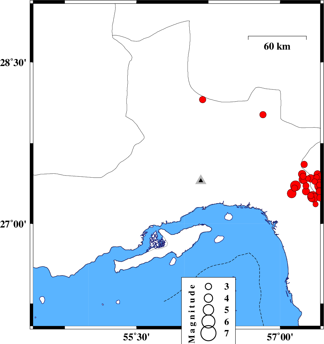 2006/03/25 | 14:19:44.4 | 17:49:44.4 | 27.11 | 56.16 | 29 | ML:2.7 | |||