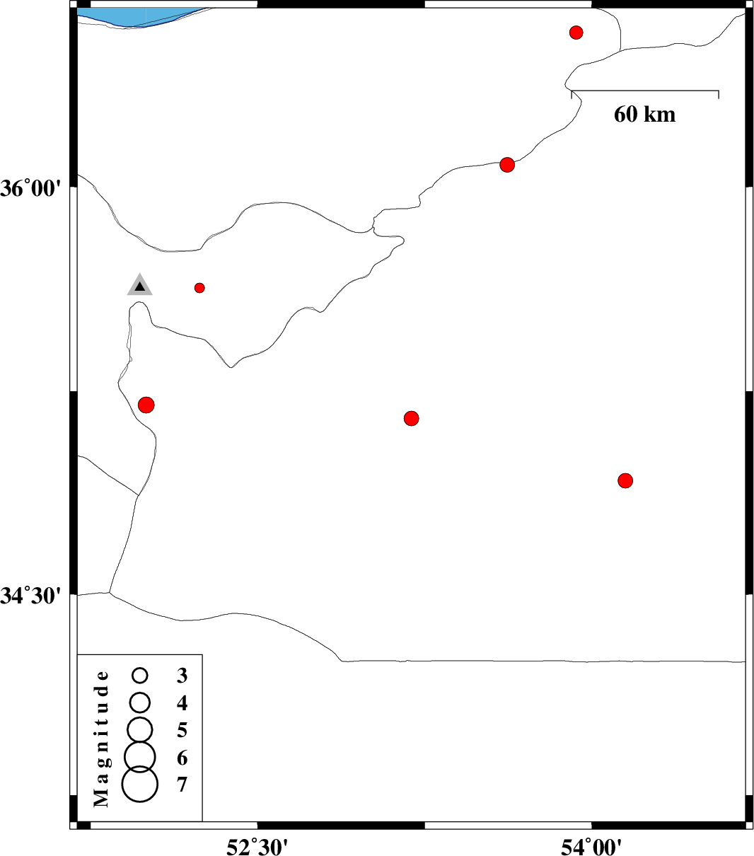 | 2006/04/03 | 00:38:05.0 | 04:08:05.0 | 35.2 | 52 | 14 | ML:3.3 | 30 km West of Garmsar, Semnan Province | ||