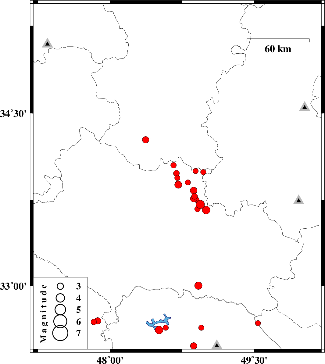 2006/06/17 | 15:36:37.7 | 19:06:37.7 | 33.71 | 48.94 | 14 | ML:3.9 | 26 km South-East of Borujerd, Lorestan Province | ||
