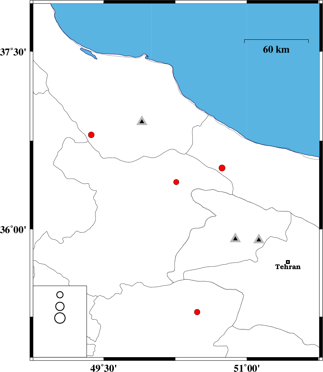 2006/08/02 | 10:09:45.8 | 13:39:45.8 | 36.8 | 49.37 | 14 | ML:2.8 | 5 km Rudbar, Gilan Province | ||